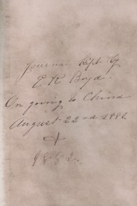 Years ago, I received a hand written list of all of the important books my great grandmother had owned. She had listed information on why the book was significant and which of her sons was to receive each book. All of these awesome old family treasures had been accounted for, except one book, Elizabeth K. Boyd’s diary from 1881 detailing her journey to China as a missionary for the Episcopal church.