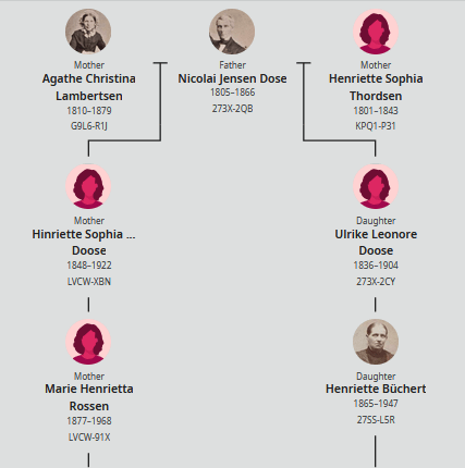 The way this works. You have to have a FamilySearch.org account. It’s FREE! Then you need to build your family tree. The site takes what you’ve entered and finds cousins who match with you. The site then shows your connection. Here is part of what this connection looks like. It continues down to You and Your cousin. (I’ve left it off for privacy reasons.)